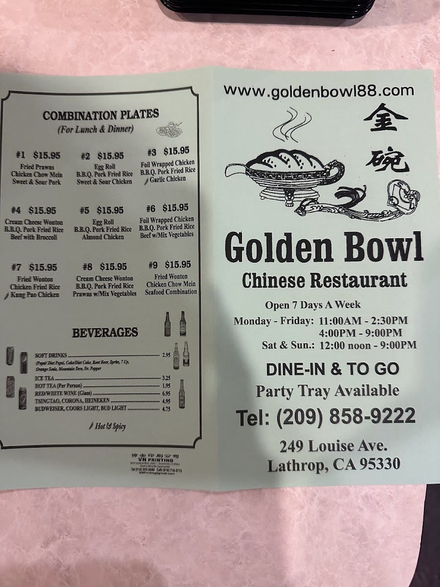Golden Bowl Restaurant - CA 95330 Menu